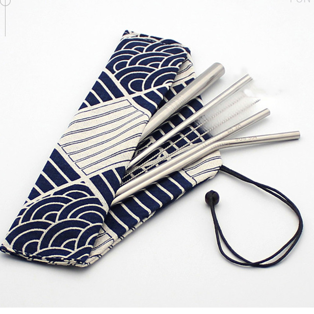 Personalizzati Riutilizzabili set del commercio all'ingrosso Dell'acciaio inossidabile di Paglia cannuccia di metallo con Brush Cleaner con coulisse pouch